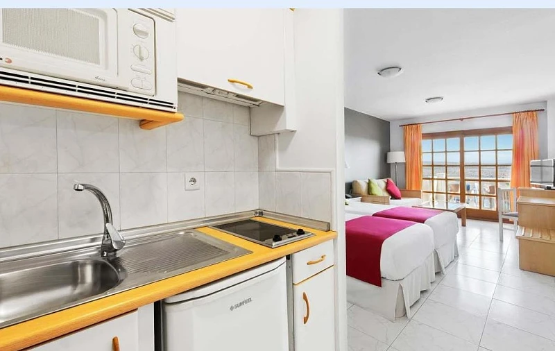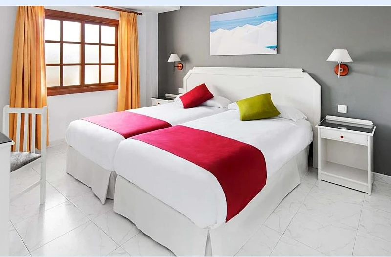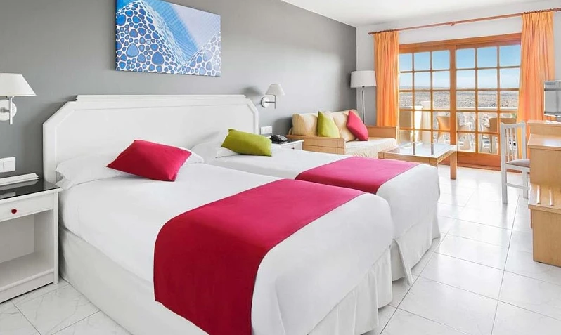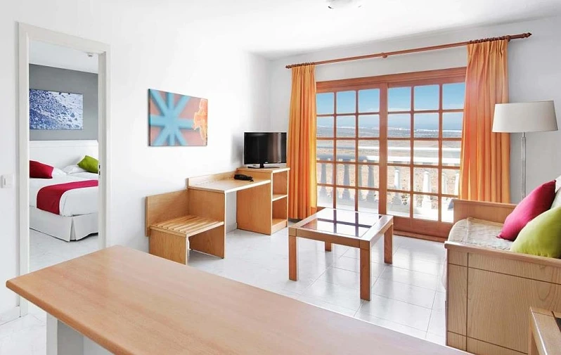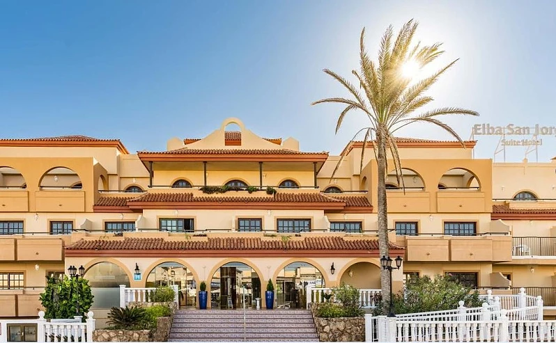 The Elba Castillo San Jorge & Antigua Suite Hotel is located in the east centre of the island, more specifically in Caleta de Fuste, a residential complex with a peaceful atmosphere perfect for relaxing and getting away from the rest of the world. It is only 7 km away from the airport, 700 metres from the beach, 4,4 km from the golf course, and 600 metres from the shopping area, making it a fantastic choice for enjoying an amazing holiday to go to the beach, taste the exquisite Canarina cuisine, go shopping, and do sport.It has double rooms, studios, and flats of one and two bedrooms, with terraces that offer breathtaking views of the sea. All of them are decorated in a modern style and have all the necessary comforts to make your stay as pleasant as possible, with a fully equipped bathroom, television, WiFi, fridge, and fully equipped kitchen with all the necessary items in the case of the studios and flats.In addition, it has swimming pools, parking, massage service, billiards, table tennis, video game area, laundry, shuttle bus, mini club, and entertainment shows. The Hotel has a large swimming pool area with a solarium and breathtaking views of the sea and the interior of the complex. There are separate swimming pools for children and adults and one of them is heated so that guests can swim during the winter. Besides, the area has a bar where you can have a drink and every evening there are entertainment shows for all ages.Free shuttle serviceElba Castillo San Jorge & Antigua Suite Hotel offers a magnificent courtesy bus service to the beach, from Monday to Sunday, from 10 am to 6 pm. It connects Caleta de Fuste with the shopping centre Centro Comercial Atlántico, following the next route: