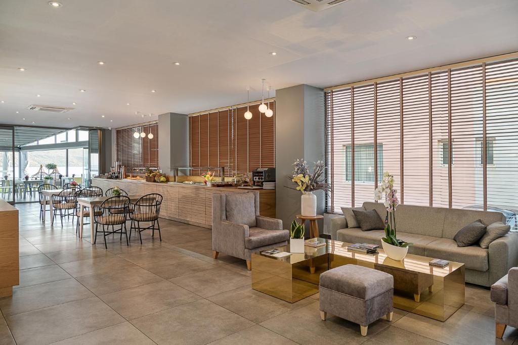 Restaurantul hotelului oferă preparate din bucătăria grecească, internațională și mediteraneană, iar snack-barul oferă o varietate de băuturi și gustări.