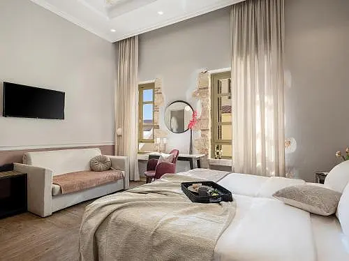 A few accommodations at Elia Palatino also include unique design elements like a balcony or terrace.