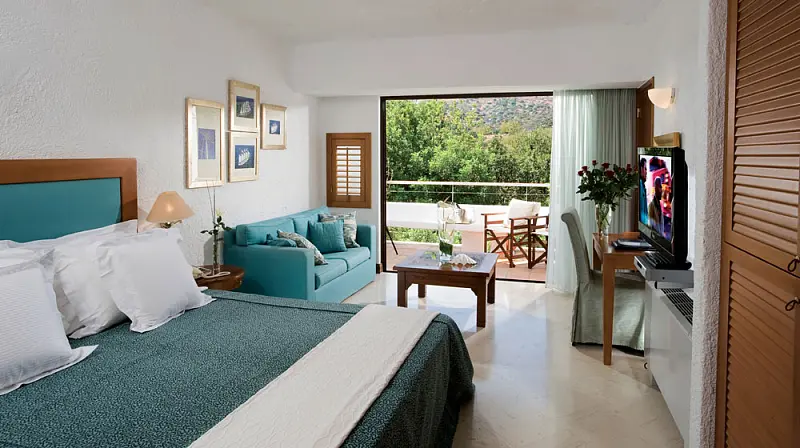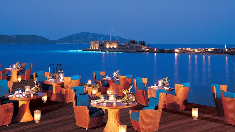 Situat pe malul marii, pe plaja cu nisip, situate în fata insulei Spinalonga. Situat la aproximativ 100 m de statia de autobuz, 1,5 km de centrul statiunii, 65 km de aeroportul din Heraklion. Hotelul Elounda Bay Palace este localizat pe malul marii, pe plaja cu nisip. Hotelul este localizat într-o zona linistita.