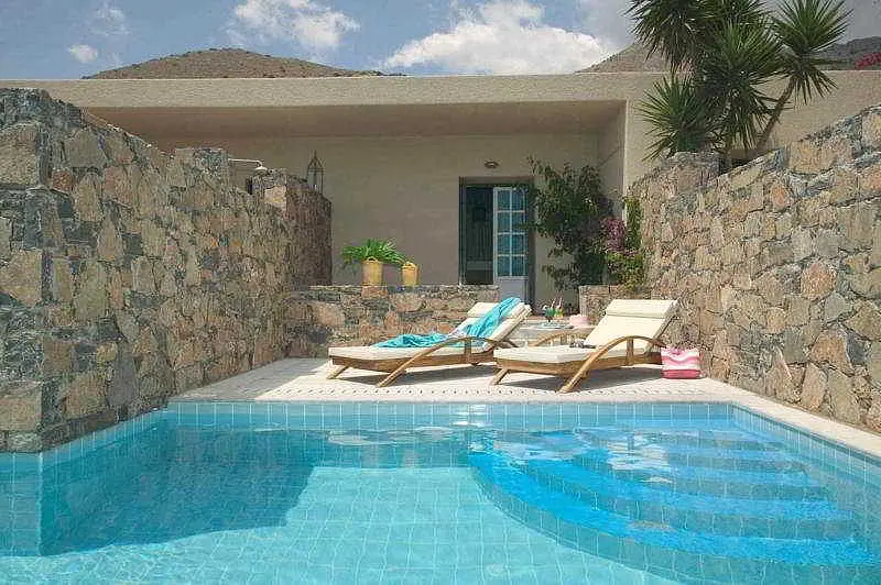 The crème and ochre-coloured hotel complex comprises 63 rooms and affords views out over the crystal-clear waters in Elounda eay. Built in beautiful surrounds, amidst enchanting gardens with views out over the bay, the hotel offers a welcoming ambience and charming musical evenings that allow for a relaxed, agreeable holiday. Facilities with the air-conditioned hotel include a foyer, a TV room, a games room, a bar, a restaurant and car parking.