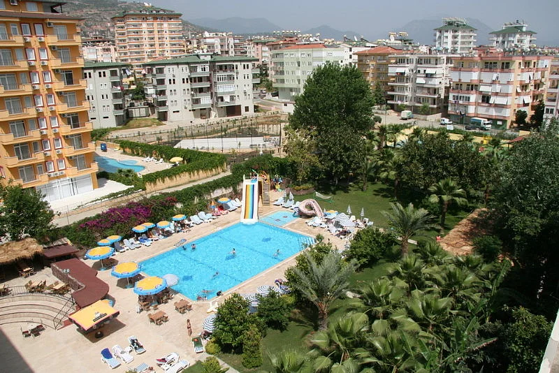 Located close to the centre of Alanya and just 800m from Cleopatras Beach, this family-friendly hotel has the asset of a lovely spacious garden with mown lawns and shade provided by palm trees. The outdoor pool is semi-Olympic in size and there are a couple of waterslides as well as some games facilities such as table tennis, darts and boccia to ensure no-one gets bored. Local amenities can be found in the vicinity of the hotel and there are many attractions close at hand such as Damlatas Cave and Alanya castle which perches on a promontory of land jutting into the Mediterranean. The pedestrianised shopping centre is a few minutes ride away on a local dolmus or 15 minutes or so walk.