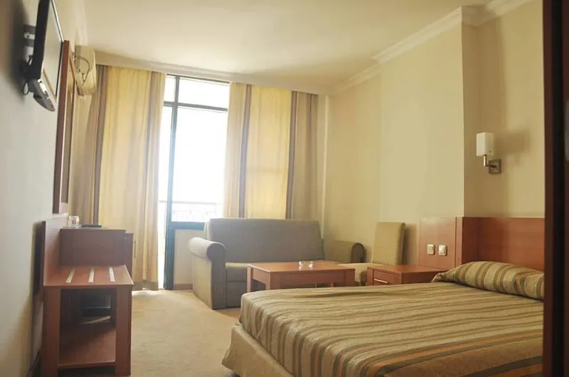 This hotel is located just across the promenade from the beach. A range of shopping venues, restaurants, bars and links to the public transport network are located in the hotel's immediate vicinity while the lively centre, with numerous shops and entertainment venues, is less than 10 minutes away by public transport. Built in 1992 and refurbished over the years, this 6-storey hotel consists of a total of 100 rooms. Guests can benefit from a small supermarket, a hairdresser, a bar, a games room, a TV room and an air-conditioned restaurant on the roof terrace, offering a wonderful view over Alanya. The hotel also provides an outdoor freshwater pool with a children's paddling area, a poolside snack bar as well as sun loungers and parasols. Guests may make use of the gym and there is a sauna as well as a massage service for an extra charge.