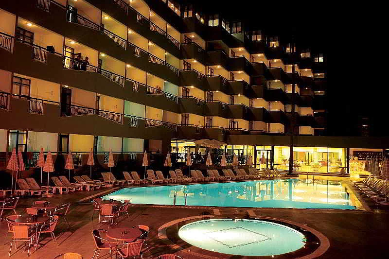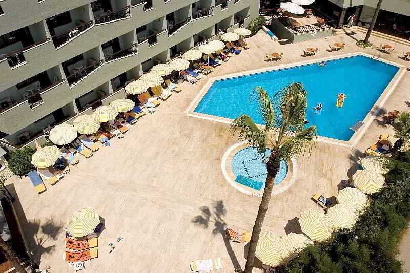 This hotel is located just across the promenade from the beach. A range of shopping venues, restaurants, bars and links to the public transport network are located in the hotels immediate vicinity while the lively centre, with numerous shops and entertainment venues, is less than 10 minutes away by public transport. Built in 1992 and refurbished over the years, this 6-storey hotel consists of a total of 100 rooms. Guests can benefit from a small supermarket, a hairdresser, a bar, a games room, a TV room and an air-conditioned restaurant on the roof terrace, offering a wonderful view over Alanya. The hotel also provides an outdoor freshwater pool with a childrens paddling area, a poolside snack bar as well as sun loungers and parasols. Guests may make use of the gym and there is a sauna as well as a massage service for an extra charge.
