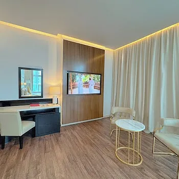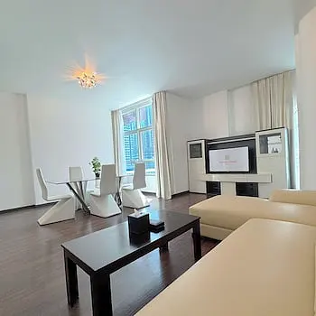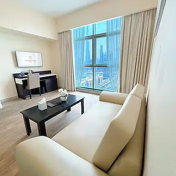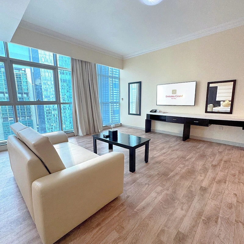<strong>Property Location</strong><p>With a stay at Emirates Grand Hotel in Dubai (Trade Center), you'll be within a 5-minute drive of Dubai Mall and Dubai World Trade Centre. This aparthotel is 2.5 mi (4 km) from Burj Khalifa and 4.6 mi (7.4 km) from Dubai Cruise Terminal.<br> Distances are displayed to the nearest 0.1 mile and kilometer. <br /> <p>City Walk - 1.4 km / 0.9 mi <br /> Museum of the Future - 1.5 km / 0.9 mi <br /> Coca-Cola Arena - 1.9 km / 1.2 mi <br /> Dubai Aquarium & Underwater Zoo - 2.3 km / 1.4 mi <br /> Dubai Ice Rink - 2.3 km / 1.4 mi <br /> Dubai Mall - 2.4 km / 1.5 mi <br /> Burj Khalifa - 2.5 km / 1.6 mi <br /> Emaar Square - 2.5 km / 1.6 mi <br /> Dubai Opera - 2.8 km / 1.7 mi <br /> KidZania - 2.8 km / 1.7 mi <br /> Dubai World Trade Centre - 2.9 km / 1.8 mi <br /> Dubai Fountain - 3.2 km / 2 mi <br /> Dubai International Convention and Exhibition Centre - 3.2 km / 2 mi <br /> La Mer North Beach - 3.3 km / 2.1 mi <br /> Souk al Bahar - 3.4 km / 2.1 mi <br /> </p><p>The nearest airports are:<br />Dubai Intl. Airport (DXB) - 14.9 km / 9.2 mi<br /> Sharjah (SHJ-Sharjah Intl.) - 41 km / 25.4 mi<br /> Al Maktoum Intl. Airport (DWC) - 57.4 km / 35.7 mi<br /> </p><p></p><br> <strong>Rooms</strong><p>Make yourself at home in one of the 346 air-conditioned rooms featuring flat-screen televisions. Your room comes with a Select Comfort bed. Complimentary wireless internet access is available to keep you connected. Bathrooms feature showers, complimentary toiletries, and hair dryers.<p> <strong>Dining</strong><p>Take advantage of the aparthotel's room service (during limited hours). Buffet breakfasts are available daily for a fee.<p> <strong>Business, Other Amenities</strong> <p>Featured amenities include a business center, dry cleaning/laundry services, and a 24-hour front desk. Free self parking is available onsite.<p>