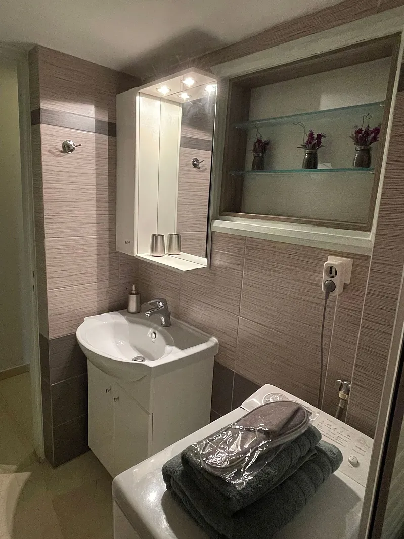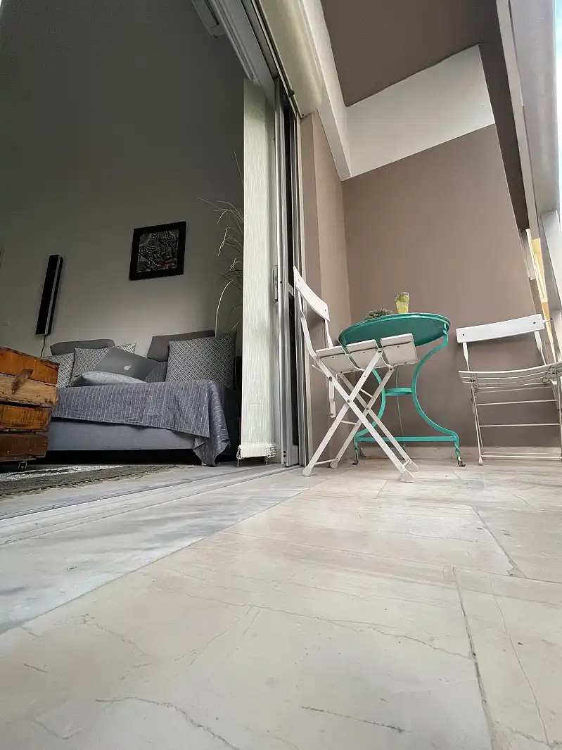 The apartment is located in the city center, but at the same time hidden in a quiet corner.