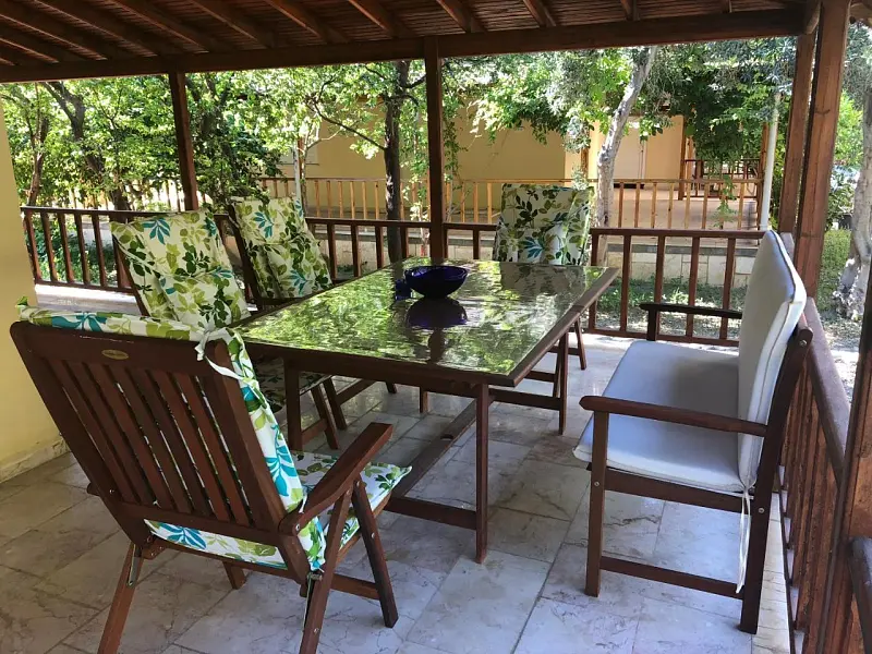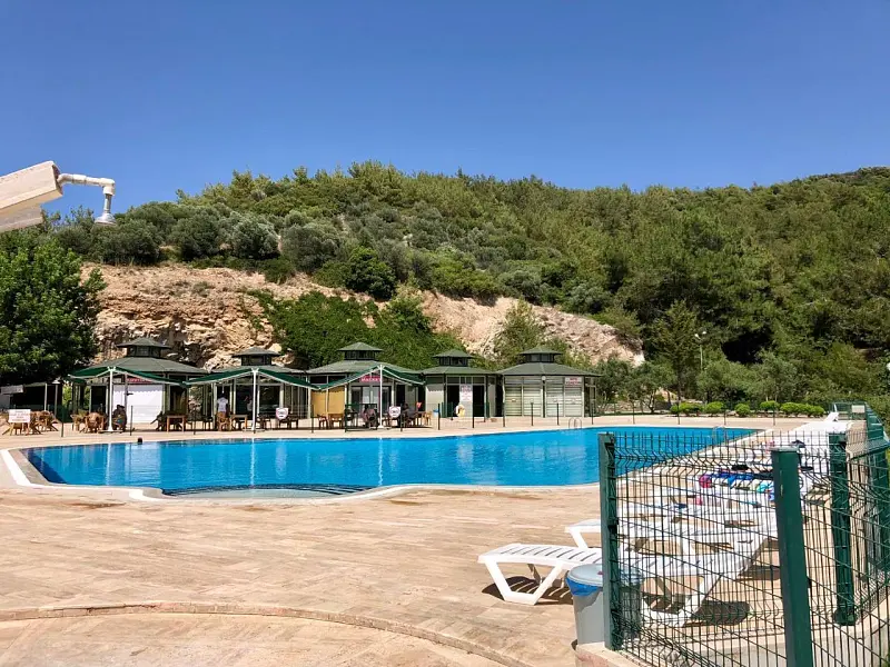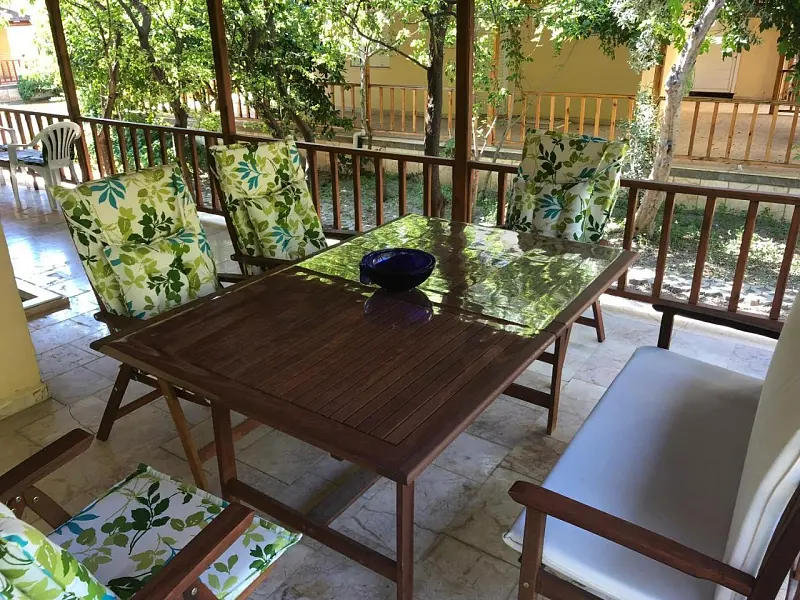 general: Featuring a patio with pool views, a seasonal outdoor swimming pool and a garden, Ephesus Holiday House can be found in Selcuk, close to Selcuk Belediyesi Public Beach and 800 metres from Pamucak Beach. With garden views, this accommodation provides a balcony. This air-conditioned holiday home comes with 3 bedrooms, a satellite flat-screen TV, a dining area, and a kitchen with a dishwasher and a fridge. Towels and bed linen are provided. At the holiday home guests are welcome to take advantage of a hot tub. Ephesus Holiday House features a children's playground and a terrace. Great Theatre of Ephesus is 8 km from the accommodation, while Church of Mary is 8 km away. The nearest airport is Izmir Adnan Menderes Airport, 69 km from Ephesus Holiday House.