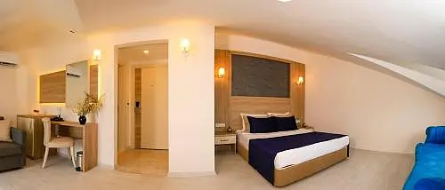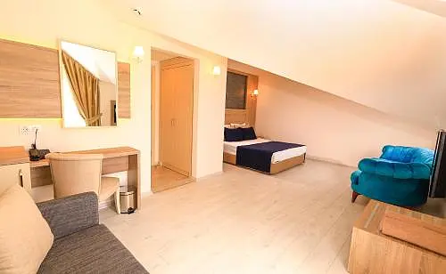 As of 2021, Eramax Hotel Kemer has undergone a renovation. it has 48 rooms. there are 15 1+ 1, 33 standard rooms. Our prices are bed and breakfast. In the rooms of Eramax Hotel Kemer; Wi-Fi, LED TV, satellite channels, mini bar, water, wardrobe, in-room toiletries, hairdryer, slippers, all of our standard rooms have armchairs. Viscoped beds are available. It is a very nice clean and confortable as much as five stars hotels. 200 m from the center. , About 1100 m from Moonlight. it is at a distance of.