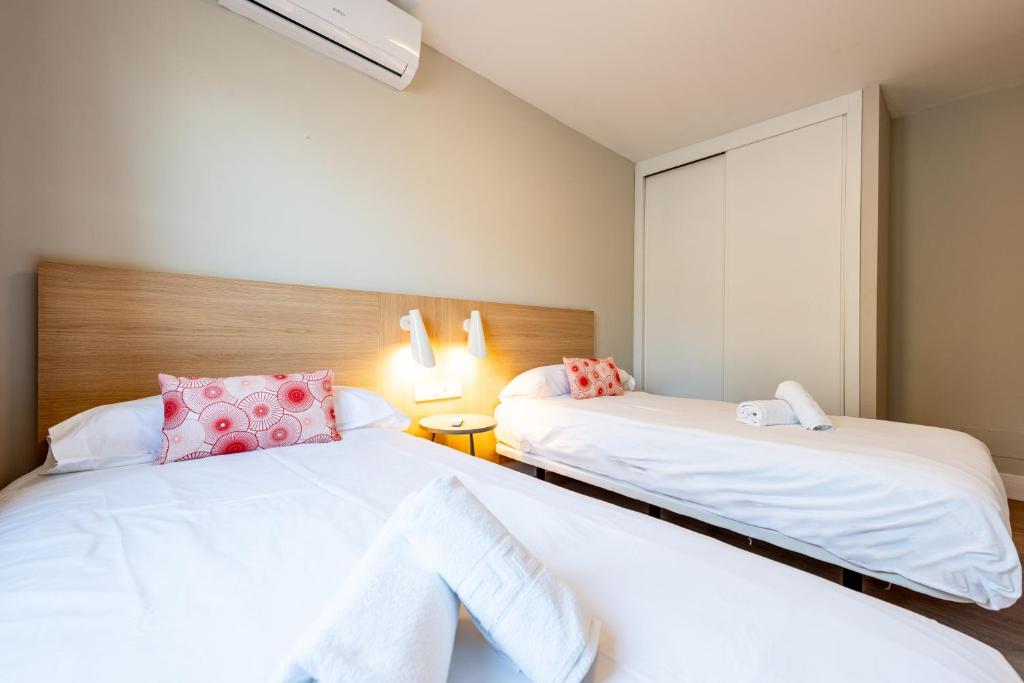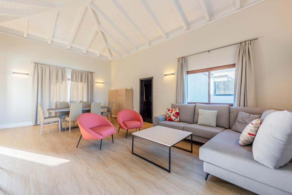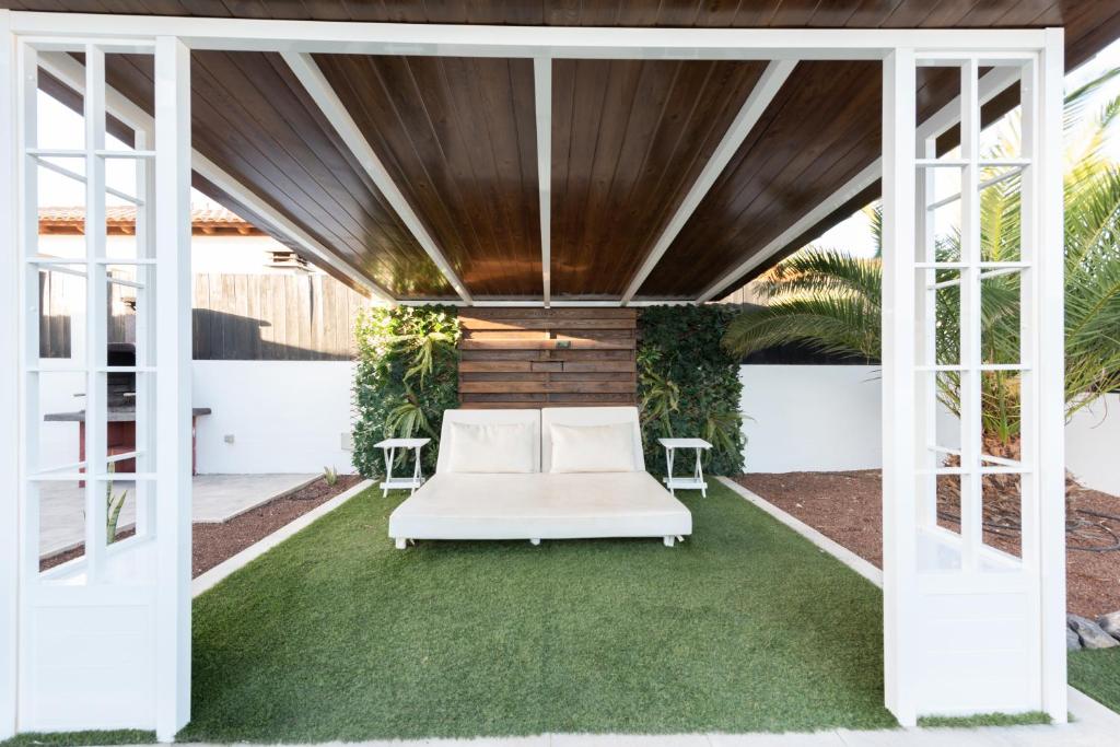 Vilele luminoase de la Ereza Villas Alicia au un dormitor dublu și un dormitor twin, ambele cu vedere la grădină. Există un living-sufragerie spațios, cu DVD player și o canapea mare.
