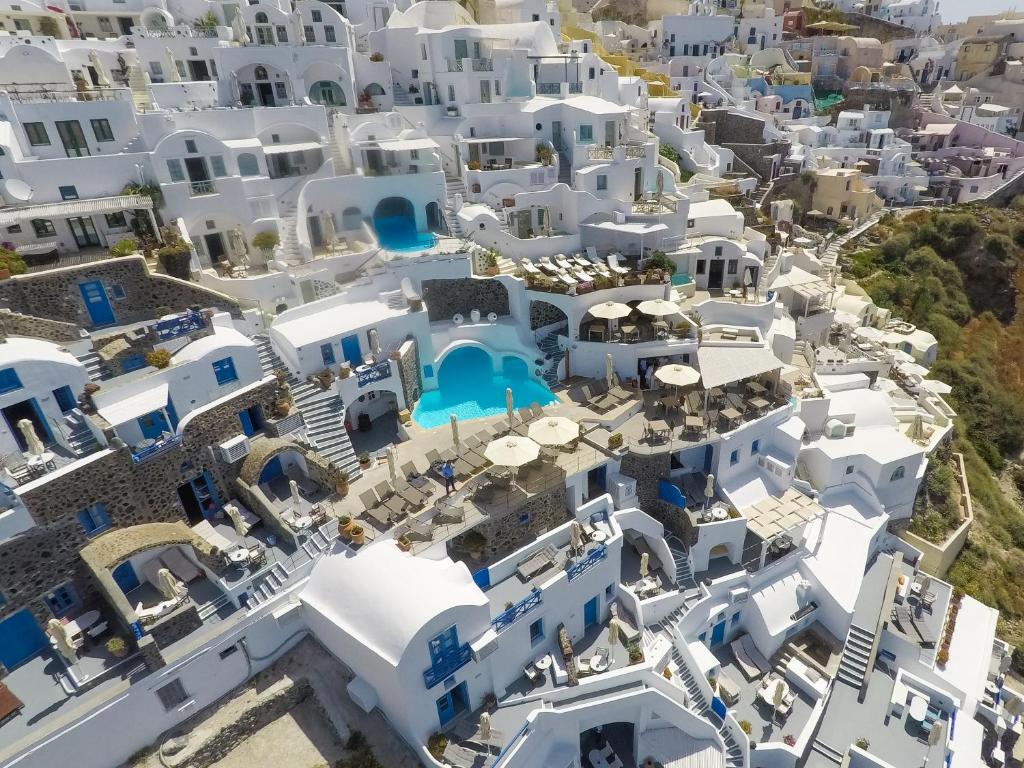 Situat pe o stancă, vizavi de vulcan și insule, Esperas din Oia are o piscină sculptată in stancă și oferă cazare cu vedere inegalabilă la Marea Egee.