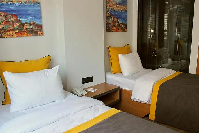 HOTEL: El hotel se construyó en 2007, fue renovado en 2011, cuenta con 44 habitaciones, 8 habitaciones individuales y 36 habitaciones dobles. SITUACIÓN: Este establecimiento, está en Antalya, está situado en el corazón de la ciudad, cerca de un campo de golf y una playa.