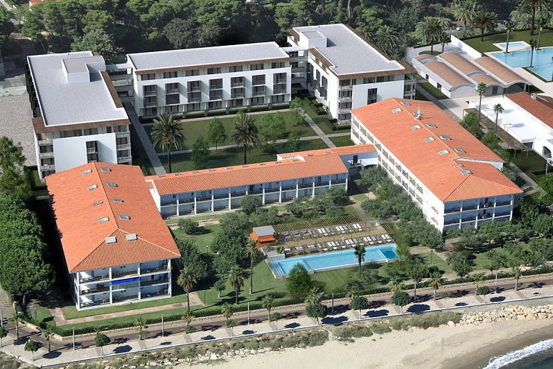 This welcoming hotel enjoys a peaceful location amidst vast parklands. The nearest beach is 50 m away. The centre and Cambrils harbour as well as many restaurants and shops lie 2 km from the complex. Reus airport is roughly 14 km from the hotel and El Prat de Llobregat airport is around 110 km away.||Renovated in 2001, this hotel consists of a total of 104 rooms, 46 bungalows and 48 villas. Facilities on offer include an inviting foyer with a reception desk, a hotel safe and a currency exchange counter. Further facilities include a bar, a café, shops, a hairdressing salon, a small supermarket, a kiosk, and a restaurant serving local and international specialities, with highchairs for infants and a terrace. The hotel additionally has a conference room and a public Internet terminal. Laundry and medical services round up the services on offer. Bicycle storage facilities are on hand, and a childrens playground as well as a kids club are also to be found on the grounds. Those arriving by car may take advantage of the car park.||The cosy holiday homes each come with a combined living/ bedroom, a separate bedroom and a private bathroom with a hairdryer and a shower. Further fittings include a kitchenette with a fridge, a hire safe, central heating, a ceiling fan and a balcony or terrace. Each of hotel rooms affords the same fittings but do not include a kitchenette, a combined bedroom/ lounge area and a separate bedroom.