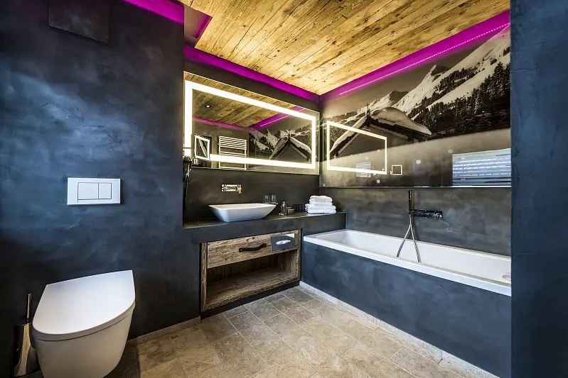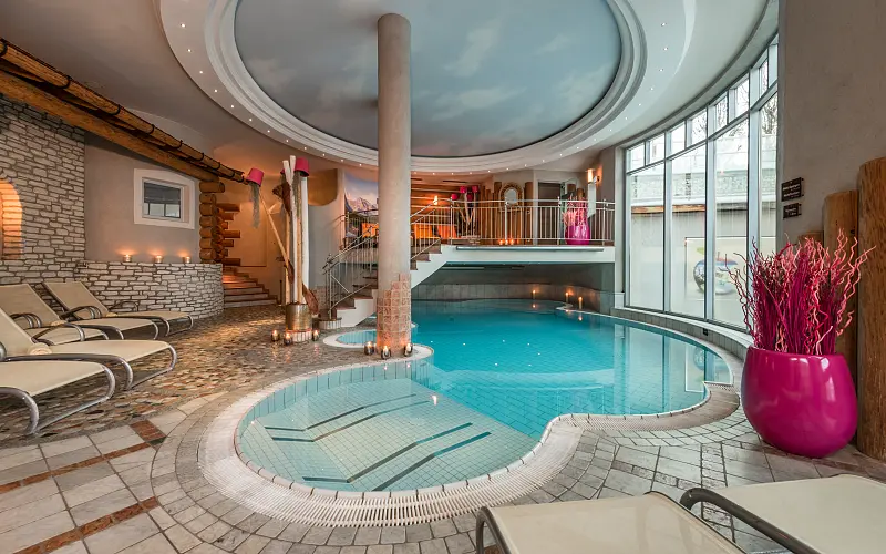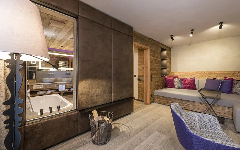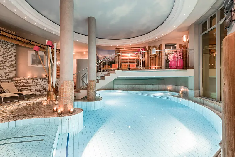 Eva Hotel & Beauty - Vital and well-being oases in the mountains of Salzburgerland, in the center of Saalbach, with elegance and stylish ambience. Opening times: Sauna open daily from 2:00 p.m. to 8:00 p.m., other areas open daily from 7:00 a.m. to 8:00 p.m facility / Ambiance: comfortable, sustainable, family friendly, luxurios, modern, rustic, small / homey target audience: sport & active travellers, honeymooners, luxury tourists