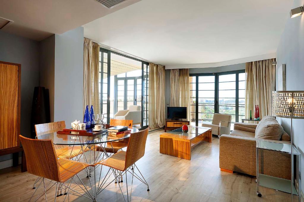 Toate camerele hotelului au decor modern, aer include, TV prin satelit, minibar și terasă. Baia privată este dotată cu cadă sau duș.