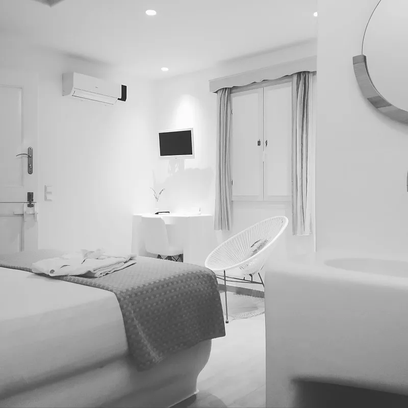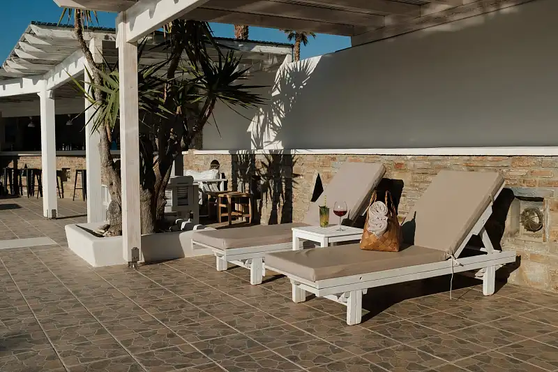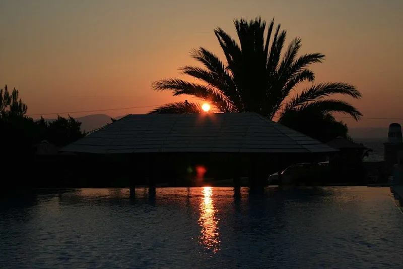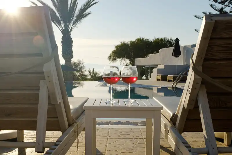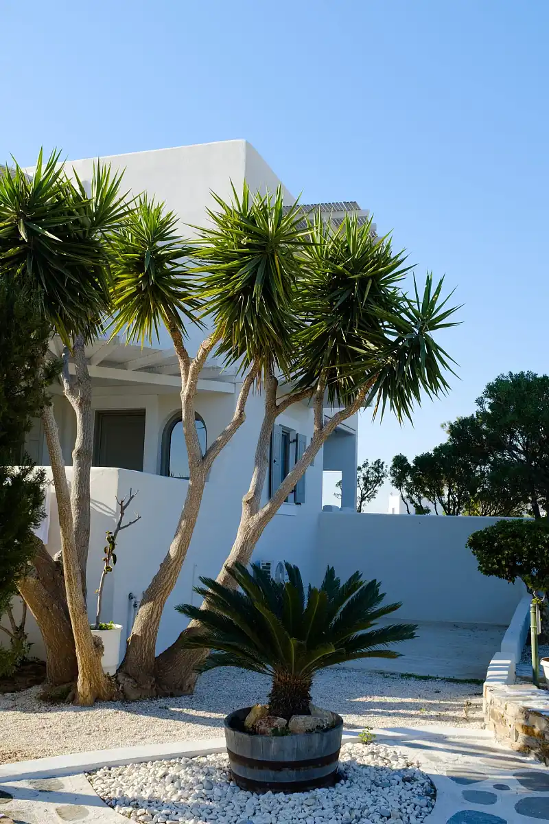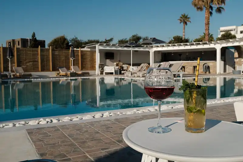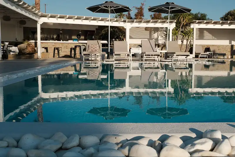 Cedar trees on the sand dunes of Alyko, amazing beaches and coves in a walking distance, colorful gardens, stunning views of the sea and the sunset, infinity swimming pool, cocktail pool bar, traditional food and family hospitality is what you can expect at Faros...