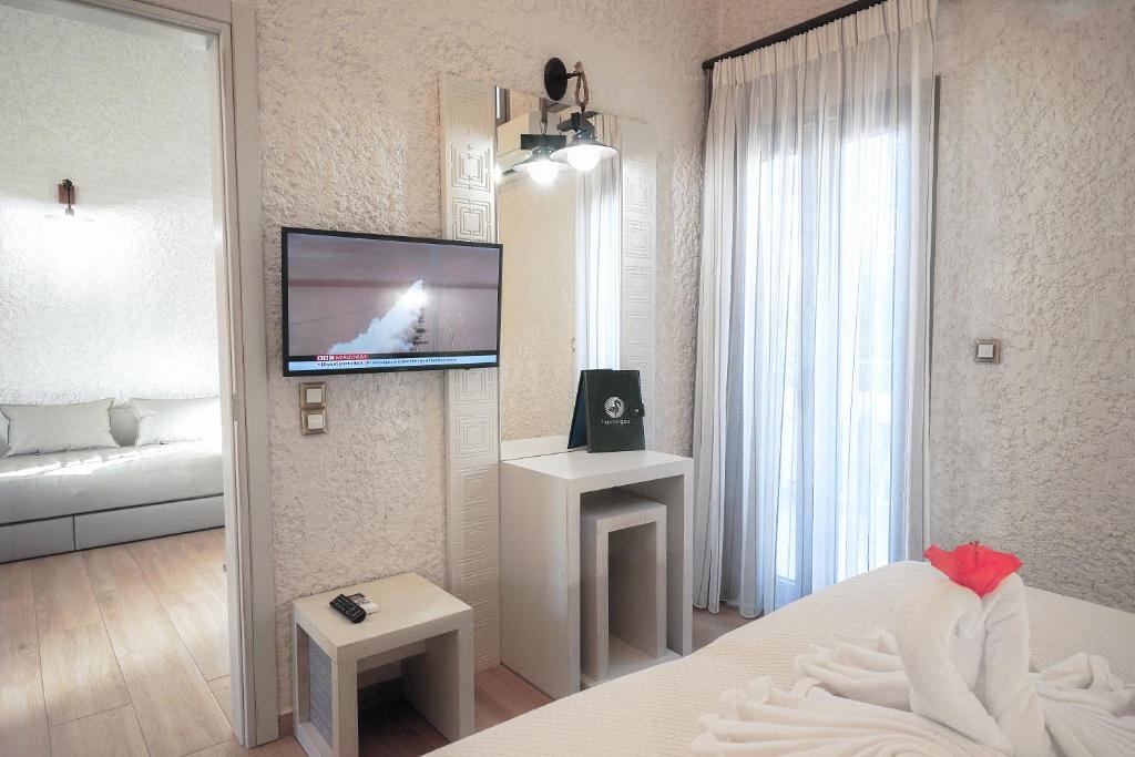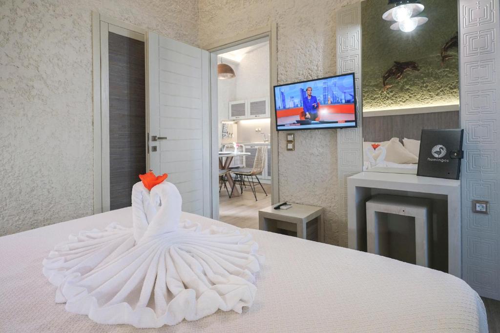 Cu vedere la grădină, Flamingos Hotel Apartments este situat in Kato Daratso și oferă room service, bar, grădină, piscină in aer liber disponibilă pe tot parcursul anului și loc de joacă pentru copii. Se oferă WiFi gratuit.