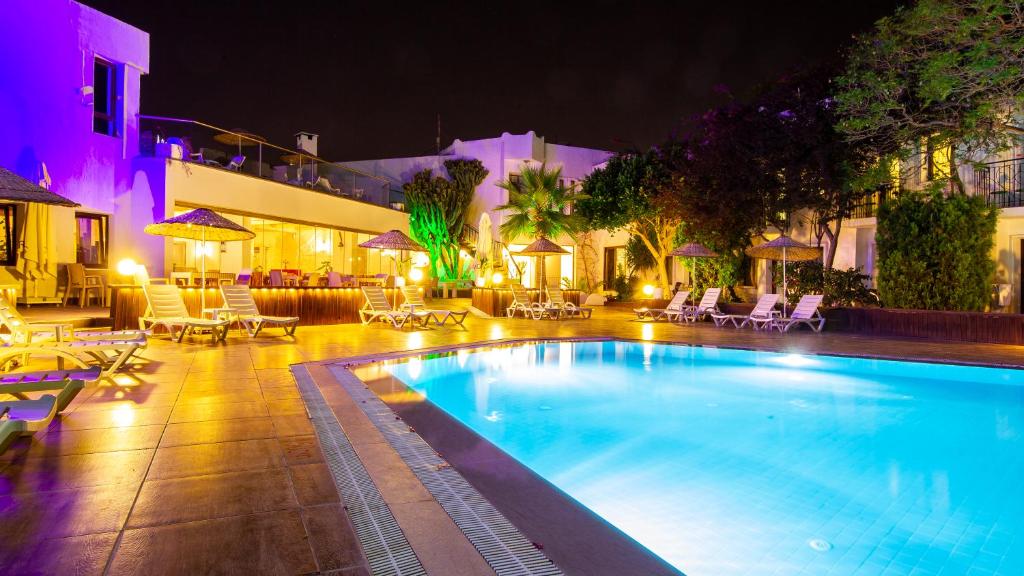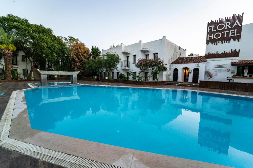 Hotelul Flora este un complex inconjurat de grădini luxuriante, amplasat pe malul mării, la 100 de metri de centrul localității Gumbet și la 2 km de centrul orașului Bodrum.
