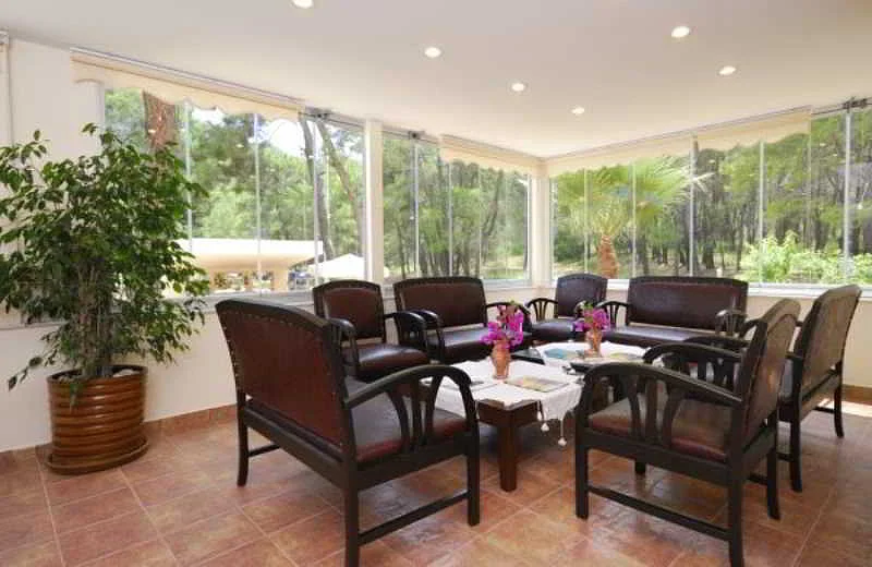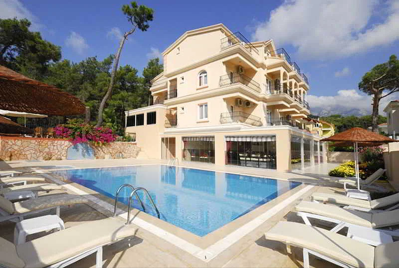 Resembling a large, 4-floor villa, this pleasant hotel is backed by pine forests and overlooks the calm, blue waters of the Mediterranean Sea from a tranquil residential area on the outskirts of the lively resort town of Kemer. The nearest beach is only a short walk from the hotel and Kemer Marina is just under two kilometres away, while centre of the town can be reached in only a two-minute drive, offering a range of shops, bars, restaurants and clubs. Additionally, a public transport stop can be found just outside the hotel. The hotel features modern décor, an outdoor pool, a restaurant and spa facilities. It is an ideal spot for those who prefer to be close to the resorts amenities but in a quieter location.