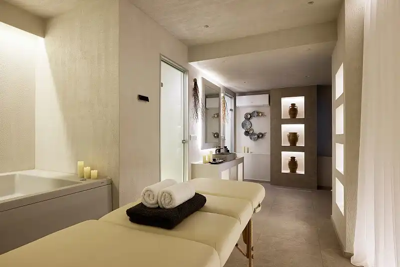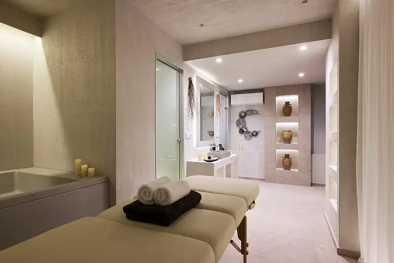 Our special characteristic... our unique bathrooms! Pebble mosaic walls, mosaic floors and built showers are combined and harmonized perfectly with the other areas! From the very first moment you will feel the beauty of Milos to overwhelm you! Processed Milos stone at the reception room with all its colors highlighted and the goddess of beauty and love, Aphrodite, welcome you in their country!
