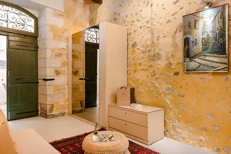 Experience the perfect blend of modern comfort and traditional charm at Giotas House, a beautifully renovated open-plan apartment situated on the ground floor in the heart of Chania. This charming retreat, nestled along a quaint pedestrian road, offers an oasis of tranquility amidst the vibrant energy of the city. The stone walls and thoughtfully designed interior create a warm, inviting atmosphere, ensuring a peaceful escape from the hustle and bustle just outside your door.