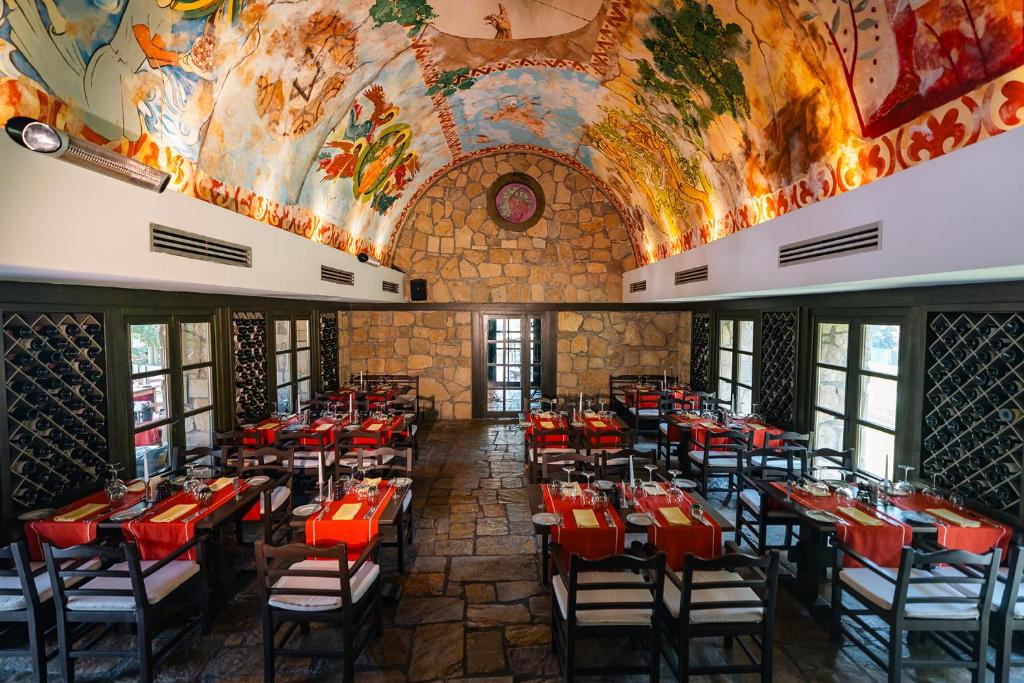 Oaspetii pot alege intre preparate culinare asiatice la Restaurantul Garuda si o combinatie intre bucătăria turcă, mexicană si mediteraneană la restaurantul principal, Mythos. Ambele restaurante se concentrează pe mese sănătoase, cu putine calorii.