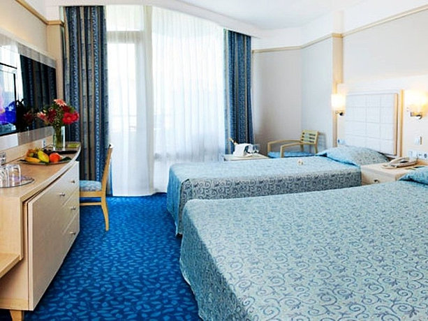 HOTEL: Este hotel cuenta con 580 habitaciones, habitaciones de tipo estándar, de ambiente muy familiar y suites. Se ofrece una piscina, baño turco, un gimnasio y actividades deportivas. SITUACIÓN: Está situado en primera línea de playa. Puede disponer a 9 km de Side, a 60 kilómetros del establecimiento los clientes pueden encontrar Antalya,