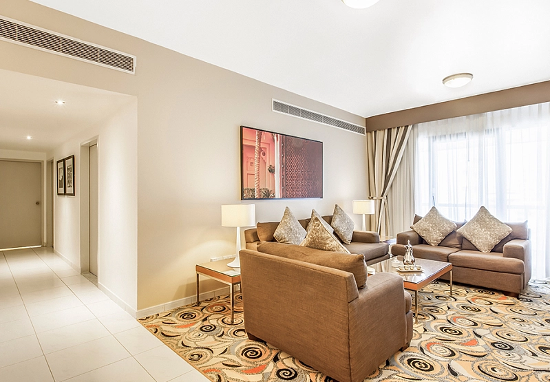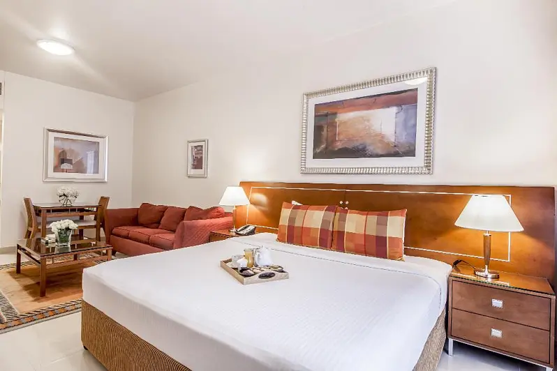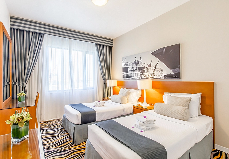 Golden Sands 10 Hotel Apartments offers 2 apartment types to suit large families, as well as groups coming to Dubai for leisure or business or both. It offers a large swimming pool and a squash court and all apartments have a full-size separate kitchen. With its perfectly placed location with a nearby metro station and a well-known fast food & supermarket open 24/7 right across the street, it is the ideal accommodation for long stays for families who are planning to settle in Dubai.