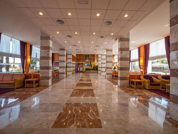HOTEL: Este hotel reformado en 2006, está en primera línea de playa. Las habitaciones disponen de baño propio, terraza, teléfono, caja de seguridad, sistema de aire acondicionado, calefacción, televisión satélite con vistas al mar y a la piscina. Cuenta con 6 ascensores, sistema de aire acondicionado, calefacción, 3 bares, máquinas recreativas, video juegos, salón de peluquería, salón y tienda. Puede disfrutar de un patio de juegos para los mas pequeños, volleyball, pista para jugar al tenis de pago directo, minigolf, 2 piscinas, piscinas climatizadas, jacuzzi y hamacas gratis. Se ofrece a los huéspedes internet, parking sin pago adicional, programa de animación y mini club. Los clientes disponen de habitaciones adaptadas a personas con movilidad reducida bajo petición e instalaciones para personas con movilidad reducida. Con referencia a la gastronomía puede disfrutar de un restaurante tipo buffet con cocina en vivo con climatización, todas las comidas se sirven en tipo bufet y 3 bares. También tiene 2 bares de piscina.