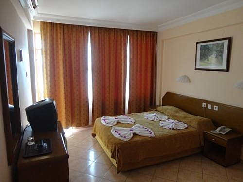 HOTEL: Este hotel con sistema climatizado, ideal para unas vacaciones en familia, cuenta con 93 habitaciones, 10 suite luna de miel, 10 suites y 35 habitaciones familiares. Los clientes pueden disponer de un vestíbulo con servicio de salida express y una recepción. SITUACIÓN: A 15 km podrá encontrar Konakli, a 20 km se dispone de Mahmutlar, a 110 kilómetros del establecimiento los clientes pueden encontrar el aeropuerto de Antalya. HABITACIÓN: Las habitaciones cuentan con cama doble, teléfono, radio y minibar. También cuentan con caja fuerte, televisión satélite, aire acondicionado y calefacción individual. INSTALACIONES: Los clientes tienen a su disposición una piscina con una parte para los niños, tumbonas, sombrillas, baño turco, una sauna y servicio de masajes con cargo adicional. También ofrece una bañera de hidromasaje, servicio médico, tratamientos de belleza, un gimnasio y aerobic. COMIDAS: En lo referente a lo gastronómico se dispone de servicio de desayuno y almuerzo y cena en buffet o a la carta. MÉTODOS DE PAGO: Se admite Mastercard y Visa. OBSERVACIONES: Se admiten animales.