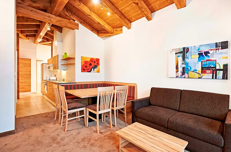 The location of the hotel is unique: it is only 50 meters from the Grafenbergbahn. The wellness area includes a pool, sauna and steam bath. Children will definitely enjoy the playroom and children's cinema. Pets up to 15kg are allowed, they must be supervised in the room and are not allowed in the public areas. The double rooms are placed in shared apartments, and the kitchen, living room and balcony are shared on site. facility / Ambiance: comfortable, family friendly, modern, suitable for children, suitable for wheelchairs target audience: sport & active travellers, group travellers, honeymooners, backpackers, low budget travellers, business travellers, couples, nature lovers, roundtrip travellers, senior citizens, shorttrip travellers, singles, wellness travellers, wheelchair user, young travellers, mountainbiker / bicycle travellers, cultural travellers, dog lovers, families, golf club travellers, homosexual, long term tourists, singles with kids