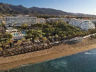 1 : This exclusive resort hotel is situated just outside the city centre of Marbella, surrounded by lush greenery and bordered by the turquoise Mediterranean Sea. Guests can enjoy a wide range of activities right at the resort, including scuba diving, windsurfing and wake boarding at the beach, and tennis, fitness, and spa activities in the fitness centre. The hotel also has two outdoor pools with Bali beds and a heated indoor pool for guest use.The luxurious guest rooms feature mountain or sea views, and all come with modern amenities such as an iPod dock, flat-screen television, and guests' choice of pillows. Guests can start the day with a delicious buffet breakfast with show cooking or indulge in breakfast in bed with room service, and later take advantage of the hotel's extensive range of services such as airport transfers, discounts on green fees for golfers, car rental services and free Wi-Fi throughout.