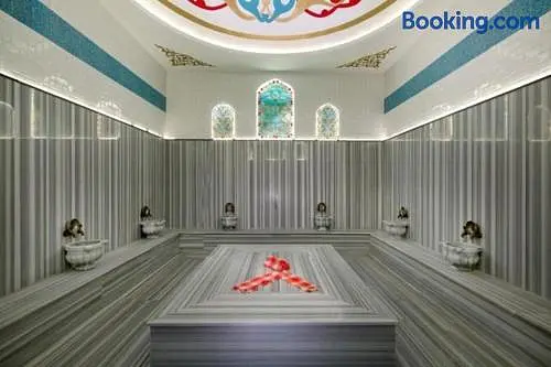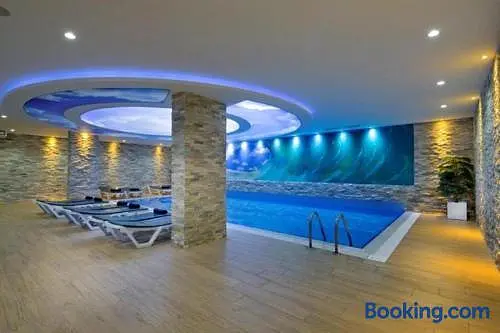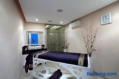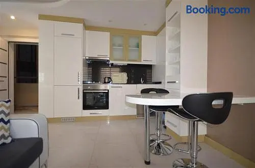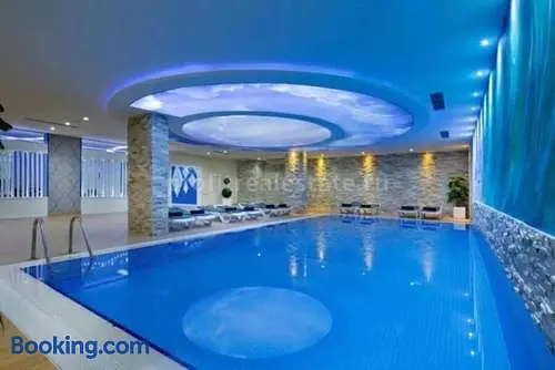 Featuring air-conditioned accommodation with a private pool, Granada City Residence, Alanya is located in Alanya. The property has mountain and pool views, and is 1.4 km from Kleopatra Beach. The apartment provides an outdoor fireplace, a 24-hour front desk, and free WiFi is available throughout the property.The apartment with a balcony and sea views features 1 bedroom, a living room, a flat-screen TV, an equipped kitchen with a dishwasher and an oven, and 1 bathroom with a shower. Towels and bed linen are provided in the apartment. The property has an outdoor dining area.Guests can take advantage of the warm weather with the property's barbecue facilities.The apartment also features an indoor pool and a sauna for guests to relax in. You can play billiards and table tennis at Granada City Residence, Alanya, and the area is popular for cycling and walking tours.Popular points of interest near the accommodation include Alanya Bus Station, Alanya Aquapark and Alanya Archaeological Museum. The nearest airport is Gazipaşa-Alanya, 42 km from Granada City Residence, Alanya, and the property offers a paid airport shuttle service.