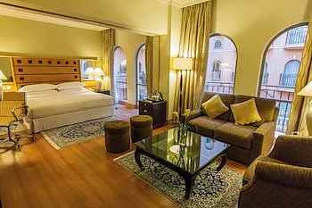 <strong>Property Location</strong><p>In the heart of Dubai, Grand Excelsior Hotel Deira is within a 5-minute drive of City Centre Deira and Gold Souk. This spa hotel is 3.5 mi (5.7 km) from Dubai Creek and 4.8 mi (7.7 km) from Grand Mosque.<br> Distances are displayed to the nearest 0.1 mile and kilometer. <br /> <p>Hamarain Centre - 0.9 km / 0.5 mi <br /> Al Ghurair Centre - 1.5 km / 1 mi <br /> Fish Roundabout - 1.7 km / 1.1 mi <br /> Dubai Creek - 2.3 km / 1.4 mi <br /> Deira Clocktower - 2.4 km / 1.5 mi <br /> Naif Souq - 2.7 km / 1.7 mi <br /> Deira Twin Towers Shopping Centre - 3 km / 1.8 mi <br /> City Centre Deira - 3.1 km / 1.9 mi <br /> Creek Park - 3.3 km / 2 mi <br /> Al-Maktoum Stadium - 3.4 km / 2.1 mi <br /> Gold Souk - 3.4 km / 2.1 mi <br /> Spice Souk - 3.7 km / 2.3 mi <br /> Deira Spice Souq - 3.9 km / 2.4 mi <br /> Heritage House - 4.1 km / 2.6 mi <br /> Al Mamzar Beach - 4.2 km / 2.6 mi <br /> </p><p>The nearest airports are:<br />Dubai Intl. Airport (DXB) - 7 km / 4.3 mi<br /> Sharjah (SHJ-Sharjah Intl.) - 28 km / 17.4 mi<br /> Al Maktoum Intl. Airport (DWC) - 68.4 km / 42.5 mi<br /> </p><p>The preferred airport for Grand Excelsior Hotel Deira is Dubai Intl. Airport (DXB). </p><br> <strong>Rooms</strong><p>Make yourself at home in one of the 229 individually decorated guestrooms, featuring minibars and LCD televisions. Complimentary wireless internet access keeps you connected, and cable programming is available for your entertainment. Bathrooms feature shower/tub combinations, complimentary toiletries, and bidets. Conveniences include phones, as well as safes and desks.<p> <strong>Dining</strong><p>For lunch or dinner, stop by Terrace, a restaurant that specializes in international cuisine. Dining is also available at the coffee shop/cafe, and 24-hour room service is provided. Unwind at the end of the day with a drink at the bar/lounge or the poolside bar. Buffet breakfasts are available daily from 6:30 AM to 10:30 AM for a fee.<p> <strong>Business, Other Amenities</strong> <p>Featured amenities include a 24-hour business center, complimentary newspapers in the lobby, and dry cleaning/laundry services. Planning an event in Dubai? This hotel has 8073 square feet (750 square meters) of space consisting of conference space and meeting rooms. A roundtrip airport shuttle is provided for a surcharge (available 24 hours), and free valet parking is available onsite.<p>