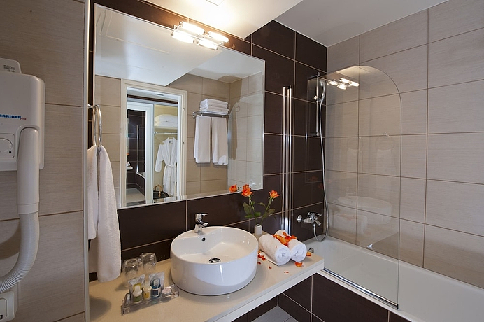 HOTEL: Este hotel cuenta con un jardín, una recepción, salones para banquetes, bar con terraza, un restaurante, un pequeño supermercado, joyería y salón de peluquería. Se ofrece a los huéspedes zona de internet, una piscina con terraza, hamacas, sombrillas, 3 piscinas, una piscina para niños con toboganes y un bar de piscina. SITUACIÓN: A 25 km se dispone de Hersonissos, se sitúa a 400 metros de la playa. HABITACIÓN: Las habitaciones elegantes tienen cuarto de baño, secador de pelo, teléfono y caja fuerte con cargo extra. Además tienen música ambiental, televisión, aire acondicionado por temporada y balcón o terraza.