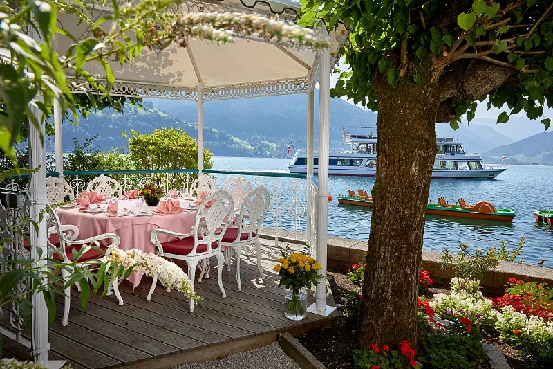 Beautifully framed by the Steinernes Meer and the Hohe Tauern, the "GRAND HOTEL" ZELL AM SEE stands on a private peninsula in the idyllic Lake Zell and has been a landmark of the world-famous mountain town of Zell am See for over a hundred years. Even behind the majestic facade, the finest views open up: uncomplicated 4-star superior comfort, alpine cosiness, a generous spa and wellness offering, a heart for children and a touch of imperial luxury and romance.