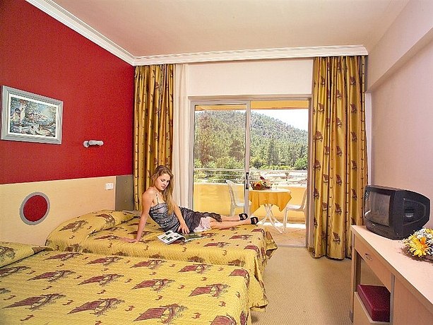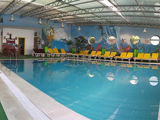 HOTEL: Hotel tipo club, tiene categoría de 4 estrellas y se construyó en 2003. Dispone de 100 habitaciones, hall con recepción, caja de seguridad, servicio de cambio de moneda, ascensor y aire acondicionado. Los clientes disponen de un salón de televisión, un patio de juegos para los mas pequeños, parking, un bar y restaurantes. Abonando un pago adicional se puede disponer de internet, servicio de lavandería y alquiler de bicicletas. SITUACIÓN: Está situado en la localidad de Kemer y Antalya. Está a unos 300 metros del centro. A 900 metros aproximadamente los huéspedes del establecimiento pueden disfrutar de una playa privada. Servicio de traslado al corazón de la ciudad, la playa y sin cargo. Cerca del establecimiento hay restaurantes, bares, clubs y tiendas. A 65 km se dispone del aeropuerto de Antalya. HABITACIÓN: Todas las habitaciones cuentan con aire acondicionado, calefacción con secador de pelo, televisión satélite, caja de seguridad, minibar, baño con ducha, cama doble, teléfono de línea directa, minibar y balcón o terraza. INSTALACIONES: Los clientes tienen a su disposición una piscina, una piscina cubierta, una piscina para niños, tumbonas y sombrillas. Los clientes pueden hacer uso de gimnasio mediante un abono extra, sauna y jugar al ping pong. Mediante un pago adicional puede disfrutar de servicio de masajes, tratamientos de spa, montar en bicicleta, esquí acuático, motos de agua, bucear, practicar surfing, windsurf, barco torpedo, motos de agua, catamarán, canoa y barca a pedales. COMIDAS: Se ofrece a los huéspedes todas las comidas tipo buffet. MÉTODOS DE PAGO: Se admite American Express, Mastercard y Visa.