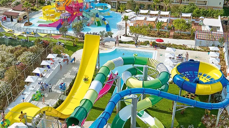 Camere echipate complet, concepute special pentru familii, restaurante, baruri, kids club, amfiteatru, magazine, serviciu de curierat, spalatorie (contra cost), camera de depozitat pagaje, wi-fi gratuit in lobby, Aqua Park.