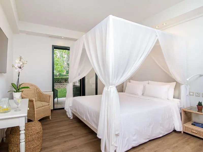 This complex is built for maximum comfort, space and wonderful views. This club resort offers a total of 285 rooms. All of the buildings incorporate elements of the Greek architectural tradition, both ancient Classical and Byzantine as well as local Corfiot. The hotel includes a conference room, a bar, café and restaurant. Other facilities at this air-conditioned establishment include a lobby with 24-hour reception and check-out service, as well as a childrens playground and kids club. Internet access, room service and a laundry service are also available (fees apply to all).