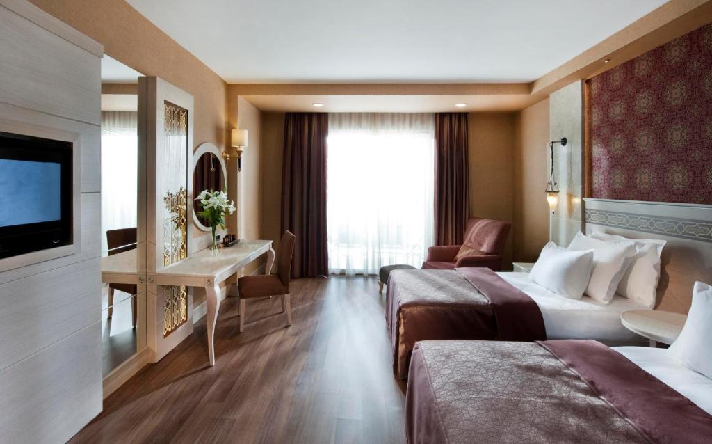 Camerele au decor linistitor, in nuante de auriu si maro, cu podea din lemn si elemente elegante orientale. Fiecare cameră de la Gural Premier are baie cu o cadă spa și balcon privat.