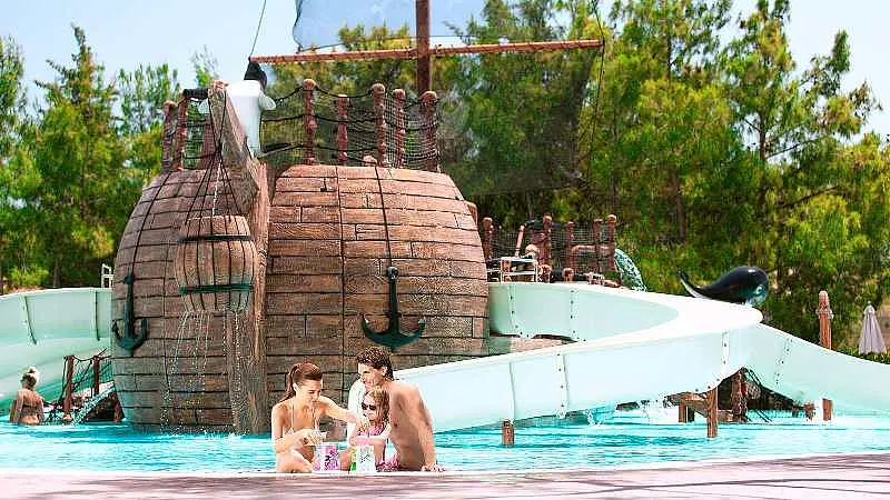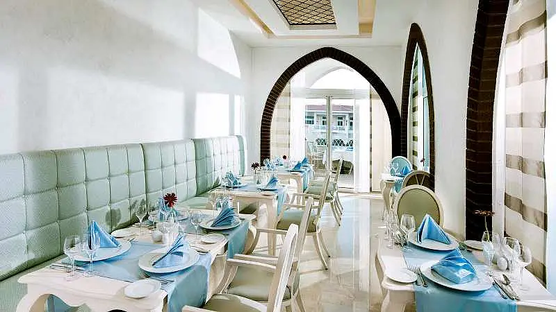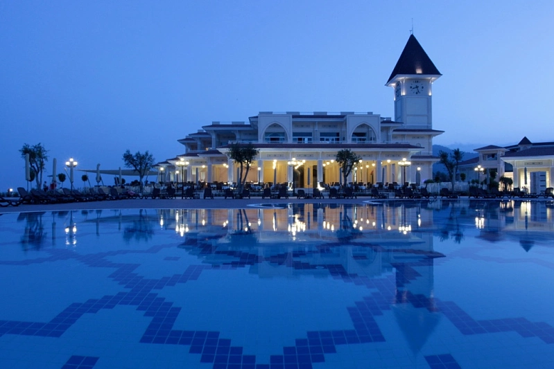 Hotelul ofera facilitati precum: restaurant principal, 3 restaurante A la carte, 8 baruri, 3 piscine exterioare, Aqua-parc, centru SPA, centru wellness, cabinet medical, centru comercial, spalatorie, tenis de masa, aerobic, volei pe plaja, program de animatie, discoteca, internet Wireless ( in lobby), discoteca, baie turceasca, sauna, aerobic, jacuzzi, sala de fitness, masaj, baie cu aburi, biliard, 2 terenuri de tenis, sporturi nautice, internet-cafe, piscina si spatiu de joaca pentru copii, midi-club, maxi-club. Plaja este proprie cu nisip/pietris.