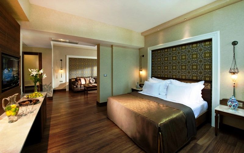 ''deluxe pool suite'': 2 camere (living si dormitor cu usa, baie cu jacuzzi si dus, 60 mp).