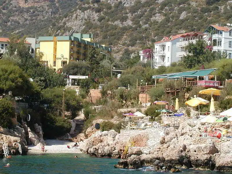 This hotel is situated in the resort of Kas, on the Turkish coast of the Aegean. Only the promenade separates the hotel from the beach. In the immediate vicinity is the resort centre with an array of shopping and entertainment facilities. Dalaman airport is about 160 km, whilst Antalya airport is approximately 185 km from the hotel. This hotel comprises a total of 47 rooms distributed over 3 floors. The air-conditioned lobby houses a number of facilities and a cosy bar with a TV area. There is an indoor and outdoor restaurant, and both have highchairs for children. Outdoor facilities include a swimming pool and a sun terrace with sun loungers and parasols, perfect for sun-lovers. Cold drinks and light snacks are served at the poolside snack bar. On the beach local companies offer various water sports for those who prefer an active vacation.
