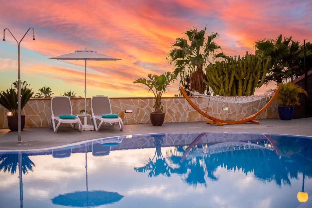 Haciendas Village Tenerife se află in Adeje, la 300 de metri de Aqualand, și are o piscină in aer liber. Este disponibil si acces gratuit la internet WiFi.