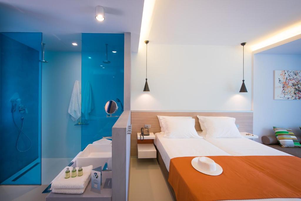 Camerele de la acest hotel includ climatizare, o zonă de relaxare, un televizor cu ecran plat cu canale prin satelit, o cutie de valori și o baie proprie cu duș, articole de toaletă gratuite și un uscător de păr. Baia proprie oferă papuci de casă. La Harmony Boutique Resort - Adults oriented, fiecare cameră include lenjerie de pat și prosoape.