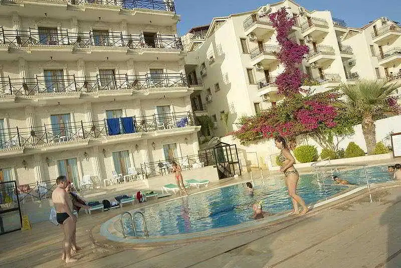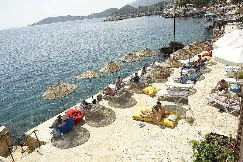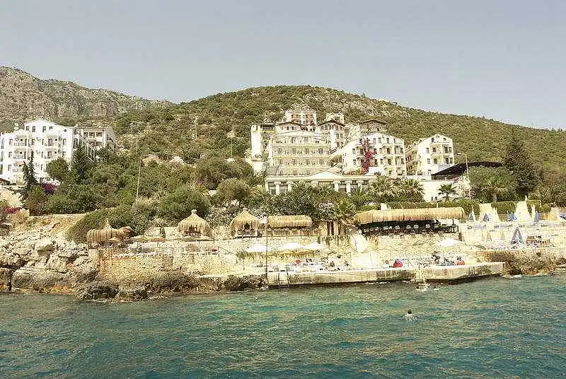 Situated in a slightly elevated position, the small and charming Hera Hotel Kas boasts magnificent views over the harbour, the bay, the Mediterranean Sea and the Greek island of Kastelorizo. It is situated just across the promenade from the bathing platform by the sea and within immediate vicinity of numerous shopping opportunities, countless bars and restaurants. Antalya is about 198 km away. |The hotels façade has a classical architecture with Greek columns, while the rooms have an elegant, modern interior design and furnishing. Guests may indulge in total relaxation in the hammam, enjoying a traditional Turkish bath or a sauna, while more active guests can work out in the well-equipped fitness centre. Features include an outdoor pool surrounded by a terrace with sun loungers and parasols as well as a restaurant with indoor and outdoor seating, serving local dishes such as fresh seafood. A perfect place for relaxed and relaxing holidays.|