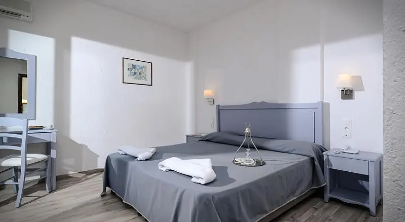 Camerele standard ofera telefon, uscator de par, aer conditionat, televizor, seif contra-cost, frigider, baie cu dus, balcon/terasa si sunt decorate si mobilate in stilul cretan.