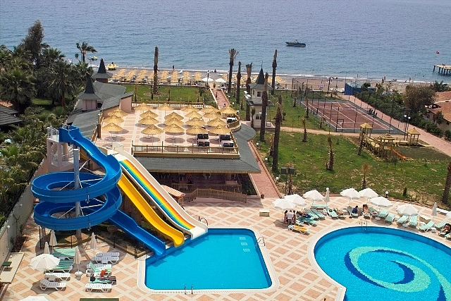 restaurantul principal, 3 baruri, piscina exterioara, piscina interioara, topogane, biblioteca, cabinet medical, salon de frumusete, spalatorie, magazin, magazin, schimb valutar, rent-a-car, parcare, sauna, baie turceasca, fitness, aerobic, teren de tenis, tenis de masa, program de animatie, sporturi acvatice, masaj, biliard, internet-cafe, sporturi acvatice cu motor, piscina si loc de joaca pentru copii, mini-club. Plaja este proprie cu nisip / pietris.