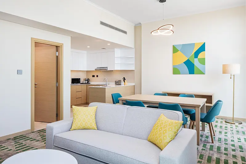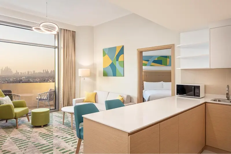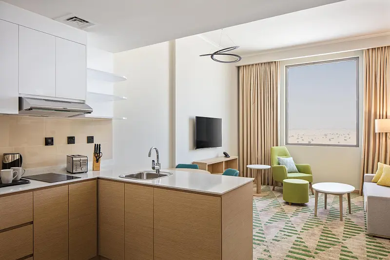Strategically situated in Dubai Science Park, this new hotel aspires to become the community's favored destination for accommodation and dining. Boasting 324 chic and contemporary guest rooms, suites, and one-bedroom apartments, the establishment further enchants visitors with its all-day dining, a lobby café, rooftop pool bar, the esteemed Irish pub McGettigan’s, versatile meetings and event spaces, and a capacious ballroom.