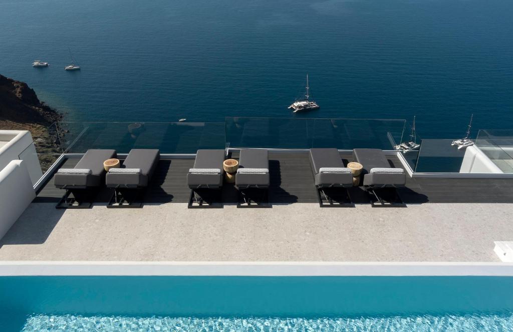 Hom Santorini se găsește in Oia, la 2,3 km de Plaja Katharos, și oferă cazare de 4 stele, o piscină in aer liber sezonieră, un centru de fitness și un bar. Proprietatea se află la 3 km de Plaja Baxedes, la 10 km de Muzeul de Arheologie din Santorini și la 19 km de Portul din Santorini. Proprietatea are o recepție deschisă non-stop, servicii de transport de la/la aeroport, room-service și WiFi gratuit in intreaga proprietate.