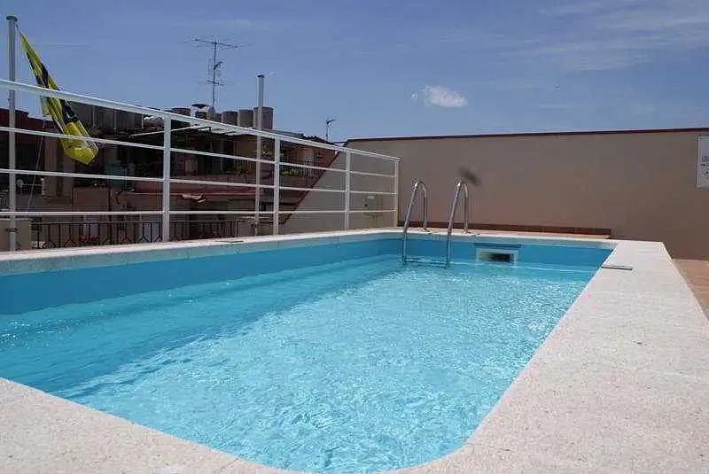 This hotel is located in the centre of the tourist area of town, and is only one street from a fine sand beach. All kinds of shops, restaurants, cafes, bar and nightclubs as well as public transport connections are to found in the hotels immediate vicintiy.This hostel has 36 rooms spread over 4 floors with elevator.The hotel features a swimming pool, a furnished sun terrace, a solarium as well as a small gym. Excursions in kayak and Nordic Walking hiking are caried out.A continental breakfast is available every morning.